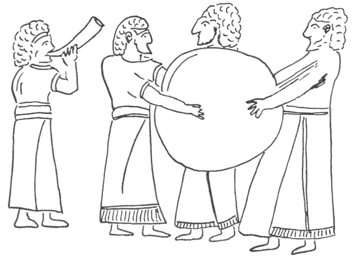 Brass instruments had been around for a very long time before we see different instruments used together. The earliest iconography shows relatively simple ensembles such as that on the Carchemish reliefs where a simple blowing animal horn is shown alongside a large frame drum. This dates from about 1250 BCE.