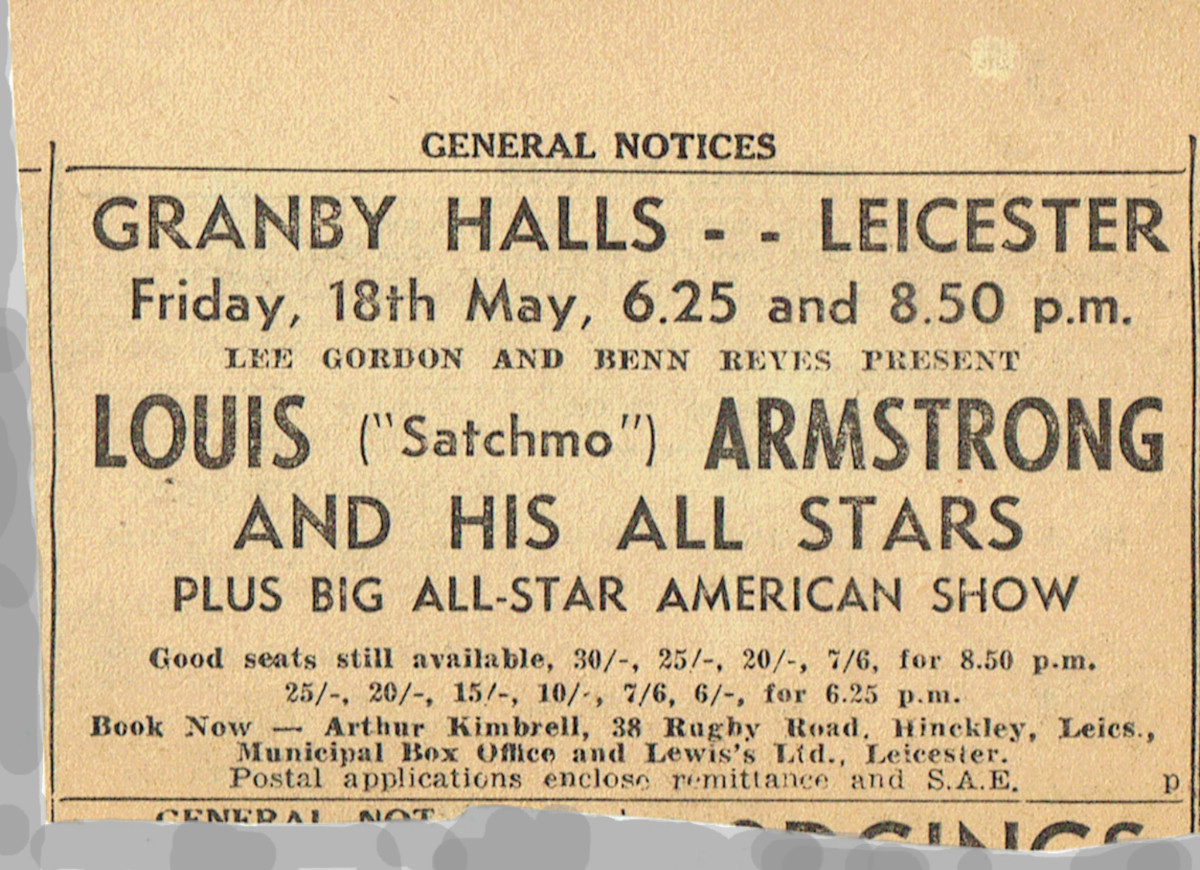 When I started playing the cornet, my two heroes were Louis Armstrong and Eddie Calvert. Louis Armstrong toured Britain in 1956, and I saw an advert in the Derbyshire Times telling about the tour.