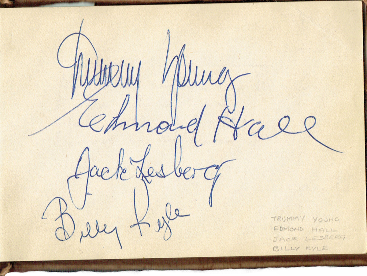 After a while, they were interrupted when Thelma Middleton came in and that was when I remembered and got out my autograph book. They all signed. First Louis and Thelma, and then the rest of the band.