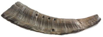 In modern-day Norway, the folk instrument, the bukkehorn is still played, this consisting of a ram’s horn with fingerholes. In Sweden, the same instrument is referred to as the bockhorn with some commentators suggesting that the name is derived from the name of the male sheep, ram or buck. That may be a modern adaptation of a more-ancient form. The image below is of a Swedish bockhorn: Swedish bockhorn by Musik – och teatermusik from Bockhorn in Wikipedia