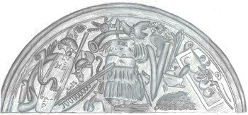 I have searched for other possible links to the pu/bu term in Latin and found only the term puteal in the Lewis and Short dictionary. Here they describe the puteal as the stone kerb round the mouth of a well, this sometimes lying nearly flush with the ground. This might seem to be an unlikely connection but one has to look at the meaning of sources of water in the ancient world. Here, they were seen as life-giving and were highly revered. The propensity of the abundance of nature to flow from them was mirrored in the Roman world by the cornucopia, the horn of plenty. Here the association of the horn with the power of nature is mirrored in the view of ancient brass instruments and may indicate some associations of the term between the brass and the puteal. Whatever their real meaning was, they were highly valued and Cicero is reported as wanting one. Their connection with nature and its impact on humans living under its influence is illustrated by the two sacred putealia which were erected over places struck by lightning, one in the Comitium and another in the Forum. The image below shows a Roman relief which contains a single horn-like instrument in the bottom left-hand corner which may have been one they described a bucina, IC615.