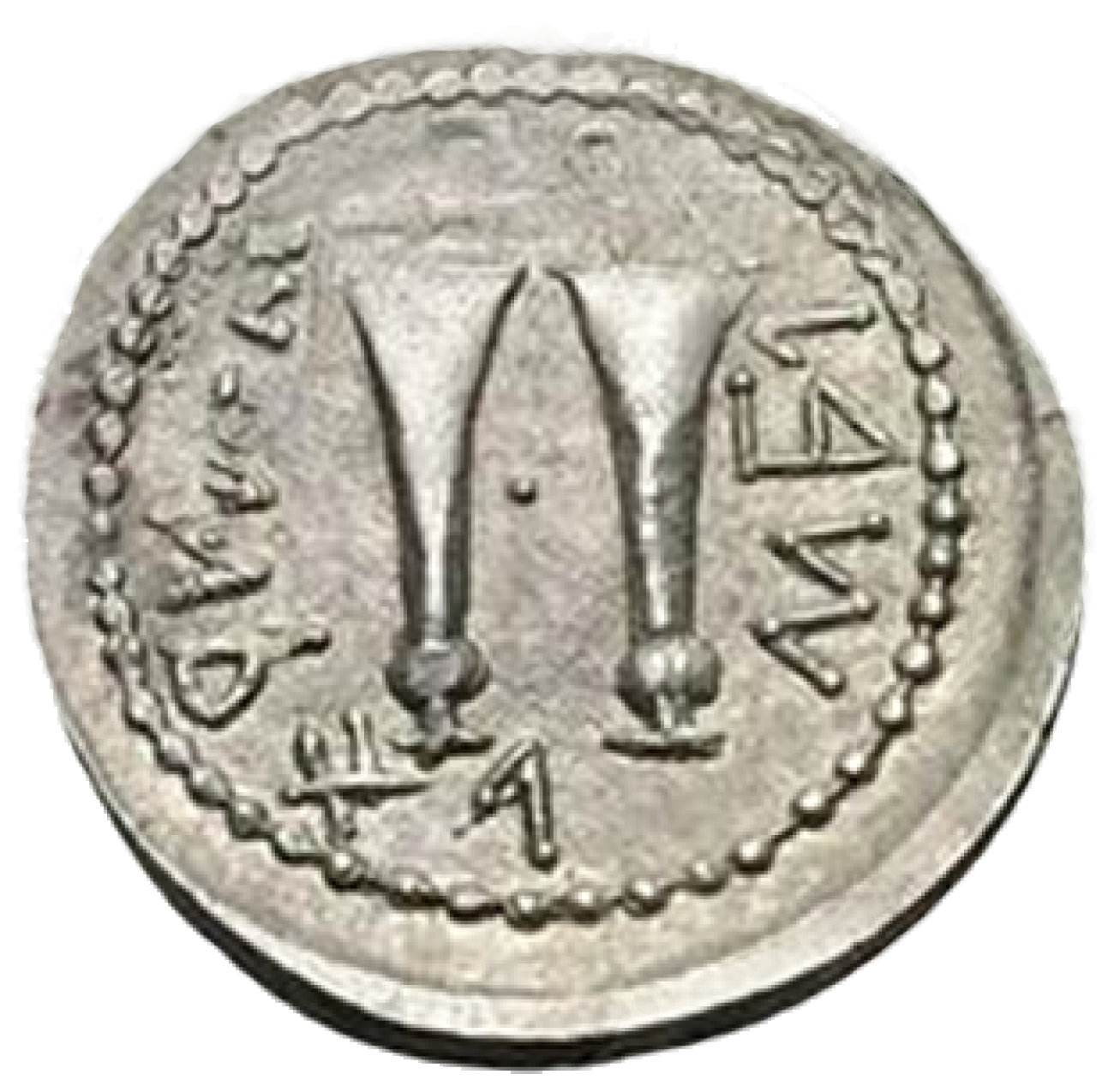 Only one group of coins from Israel shows a brass instrument, these being the Bar Kochbar coins which show the chatsotserah. The type coin for this group is IC033