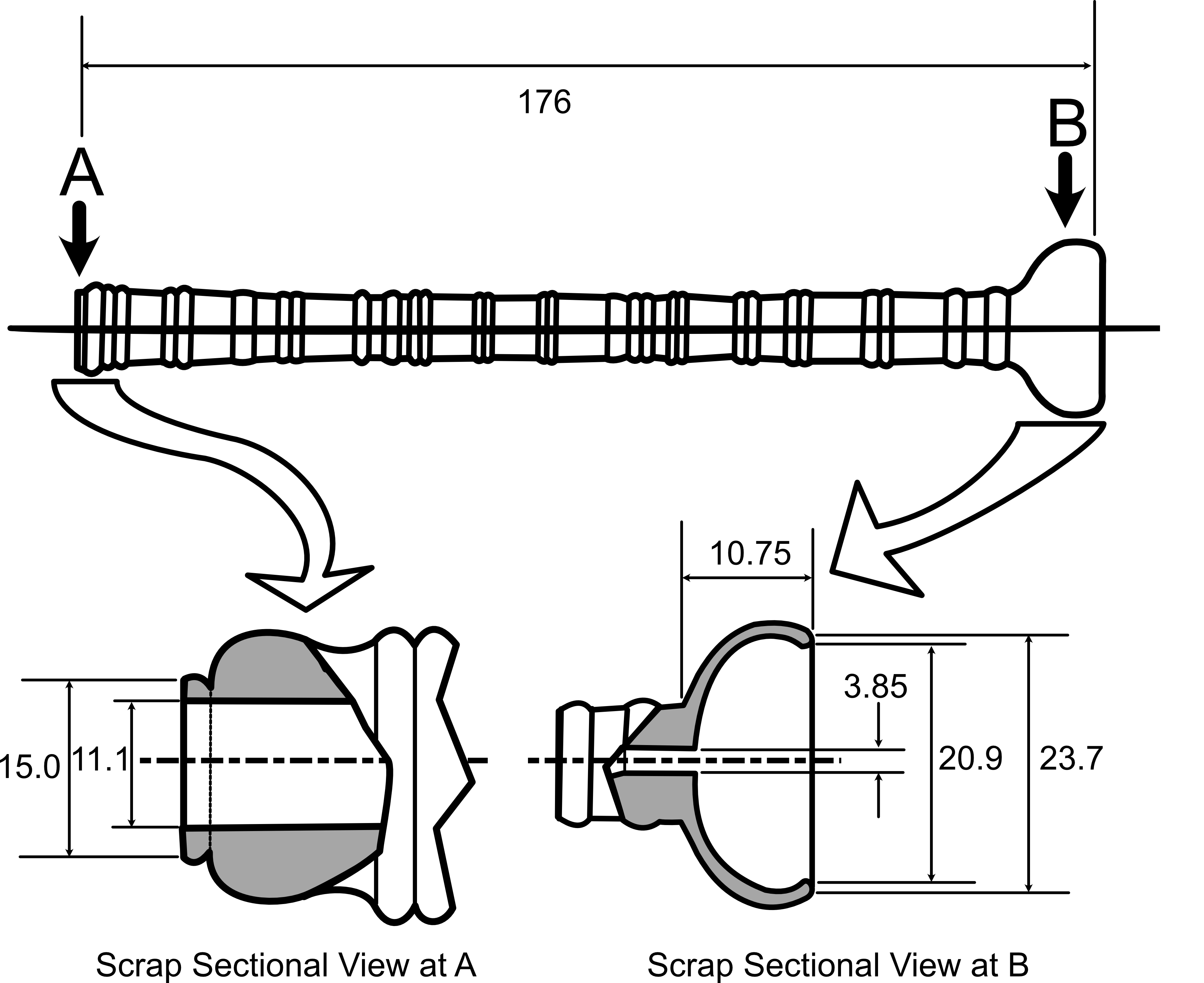 Dimensions of the mouthpiece. To re-use this image cite hornandtrumpet.com, SD255: