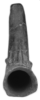 Description: A fired-clay animal-horn analogue. Overall length 355 mm